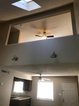 The two level 1 bedroom-1 bath loft apartment is an estimated 800 sq ft with washer/dryer connections, open wood deck area, and sky light at $1099.00 rent.