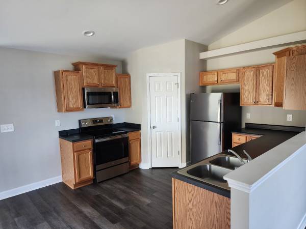 Stainless Steel Appliances in Kitchen, Smooth Top Range, Dishwasher, Frig, Over Range Microwave