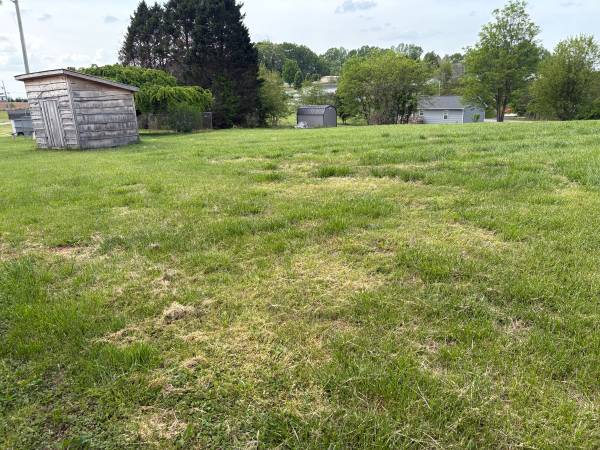 Large outdoor storage building. Large spacious yard so must have a lawn mower.