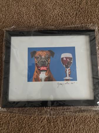 Boxer and Dachshund art! Frames are 11x9 inches, never hung in our house but very trendy and colorful. $10 for both OBO can split if needed!