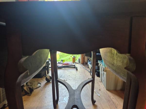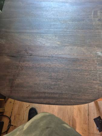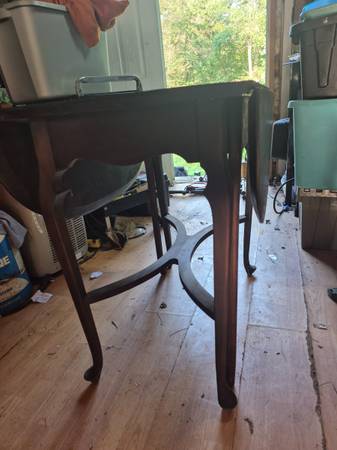 Solid walnut drop leaf, gate legged table. It has original finish in pretty good shape, could use some love. I need it out of my way!