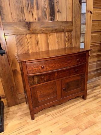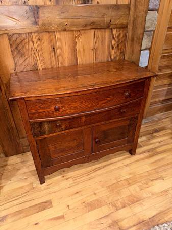 Antique Wood Oak Bow Front Dresser 34"W x 16-1/2"D x 28-1/4"H 2 Doors 2 Drawers Good Condition