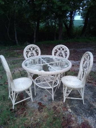 This round glass top table with four chairs is in excellent condition. It has been in storage, I only took it outside to take pictures.