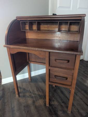Antique Child's Roll Top Desk with two drawers 27" wide by 15" deep by 36" tall