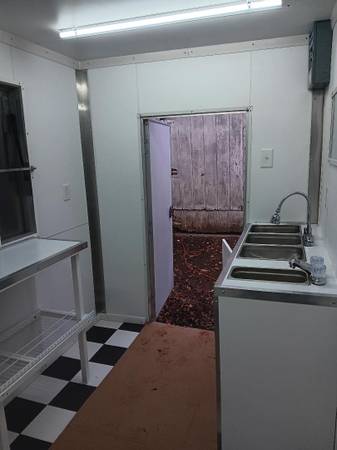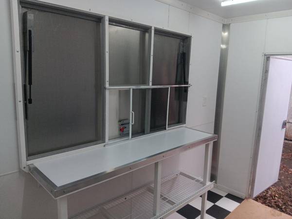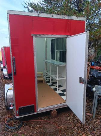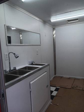 pretty much ready are you--we have a BRAND NEW NEVER BEEN USED food trailer just waitin fer you--you are ready aren't you--you do want to make money selling your food wellll here is a 10ft long x 6ft wide x 7ft high trailer that has 4 sinks--hot water--water pump--10gal fresh water tank--16gas waste water tank--water fill from outside or hookup a hose and you are ready for water under pressure--has electric enclosed in walls--power box with breakers--shore plug on outside of trailer for your generator or regular power hookup--already has framed in area in ceiling for hood exhaust or a air conditioner with power and seperate switch--walls and ceiling finished with health dept approved material--counter inside under serving window with storage under the counter--has big vending window with sliding screen--1 piece BLACK AND WHITE floor tile--this trailer has the new polycore siding so no ugly ripples that makes your new concession trailer look like it has dents all over it--this is a very easy tow trailer that does not require a big vehicle to tow it with--comes with a deck built on tongue to hold propane gas tanks or generator--welcome to come look--stand inside see if it will work for you. we are starting on a PINK trailer to finish just like this one--same size--same build--same price--sorry no financing--no rent to own--no trades unless its cash--our price is $12,995 total cash price out the door [ nothing extra ]. oh yeah i can charge more if you want just ask/