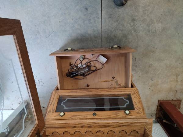 Used Gun case with keys brown with glass case in good condition will hold 8 guns. It also has 2 drawers for storage. Selling for a friend. 74" tall 26" wide