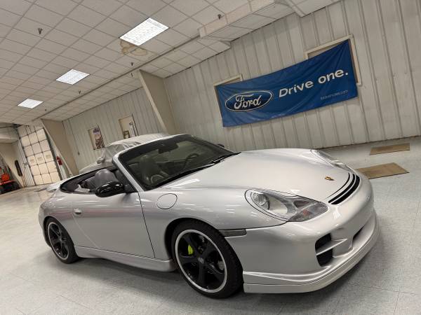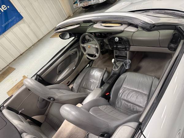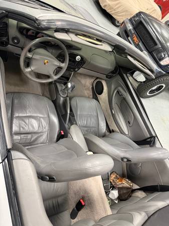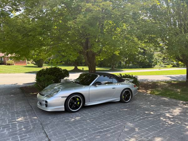 1999 porsche 911 carrera 2 cabriolet. Artic silver in colors Manual 6spd transmission, 76k miles. GT2 Aero kit. Upgraded exhaust, headers, air box, brakes and suspension. Very neat Carrera 2 car, leather interior with full carbon trim. Soft top was replaced in 2023 IMS, RMS, clutch and a list of other items done in 2022 at 70k miles. I have really enjoyed this car on the weekends but I’m looking to upgrade to something newer. Paint is in excellent condition minus one paint chip on the hood. I also have the Porsche hard top for the car as well. No trades