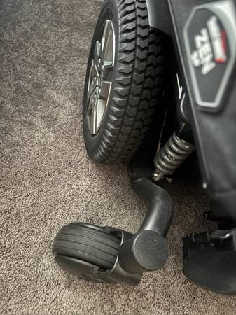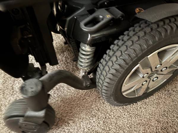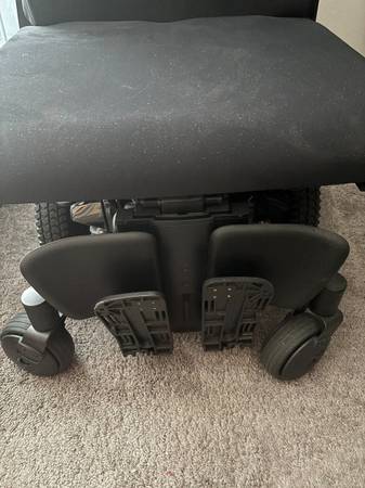 NEW, never used, never been outside of apartment (wheels have no dirt, it's been sitting on carpet since I got it 6 months ago). Cost over $4500. It is a bariatric size (wide) and will hold over 500 pounds. It's too large to use in my small apartment. It has 4 speeds, It raises and reclines, has headrest, footrest, charger. See the pictures.