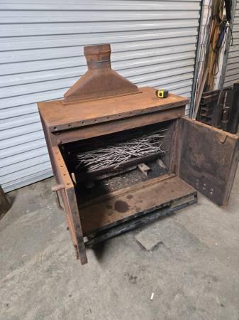 Constructed entirly of 1 1/2 inch plate steel Extreamly well made Estimated weight is 3000 lbs It is on wheels 8 " exaust pipe Can deliver locally