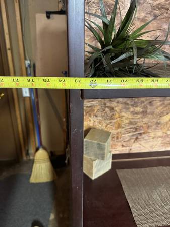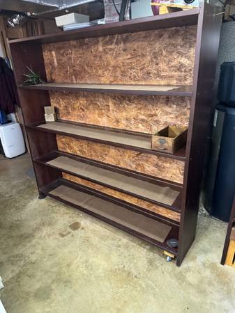 FOR SALE: NICE WOODEN DISPAY OR STORAGE SHELF. USED TO DISPLAY OUR POTTERY, HEAVY DUTY. SHELVES AND FRAME MADE FROM ONE INCH FINISHED MATERIAL. SIZE: 74 INCHES WIDE 72 INCHES TALL 15 INCH DEEP...