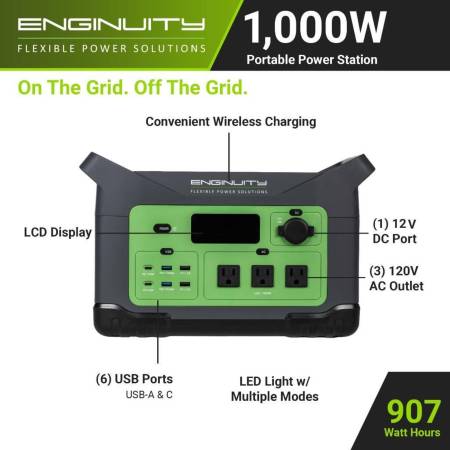 Power Capacity: 1000-Watt portable power station with a 907Wh lithium-ion battery, providing reliable backup power for essential devices.