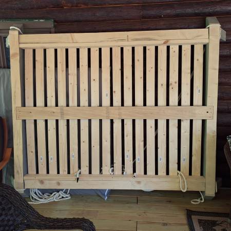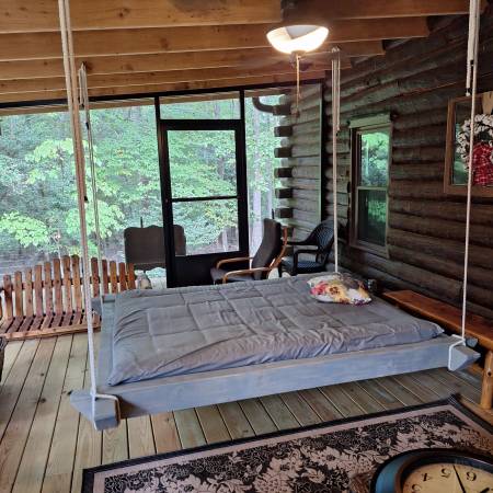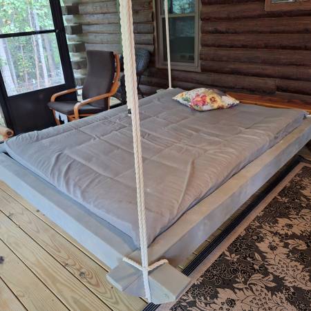Meticulously built swinging bed. The bed is well constructed with a covered mattress pad. It is oversized and has tags underneath that state made in Sweden. We purchased a home with the bed as a selling point. We need the deck space instead and have never used it. It is like new. Please view all the pictures and research online for comparable prices before contacting us through email or craigslist web.
