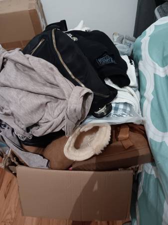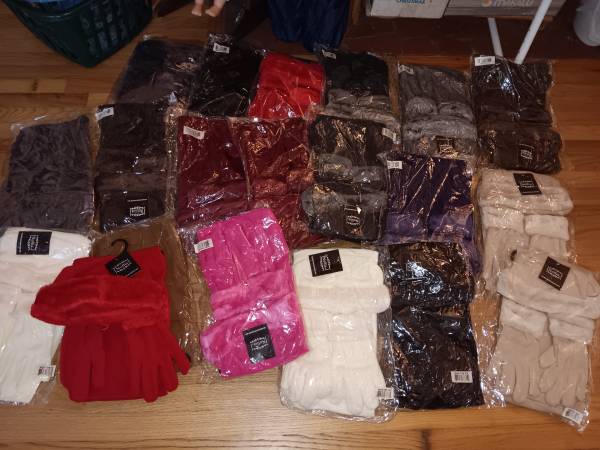 There is 8 purses and twin sheets and shoes belts and reborn doll and 20 sets of scarf hat and gloves sets in this box the box value is around 200$
