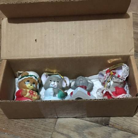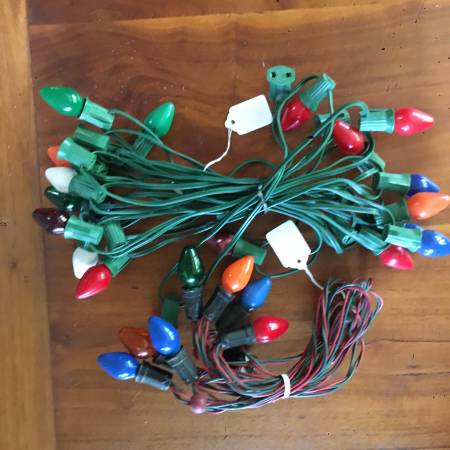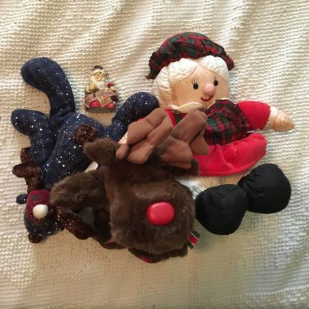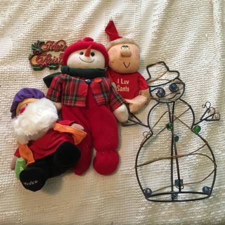 This is a lot of various Christmas decorations. Some are vintage, some are newer. There are plush Santa's, animals and others, bells, ornaments, one Christmas stocking, a knitting kit and other various ornaments and decorations. There is also 7 sets of large vintage and newer lights. Some items may need to be cleaned.