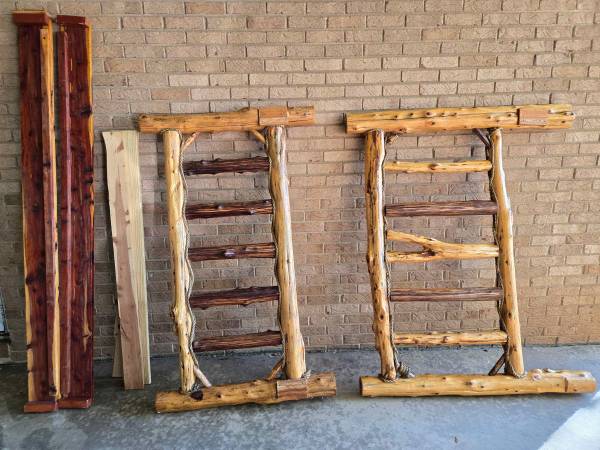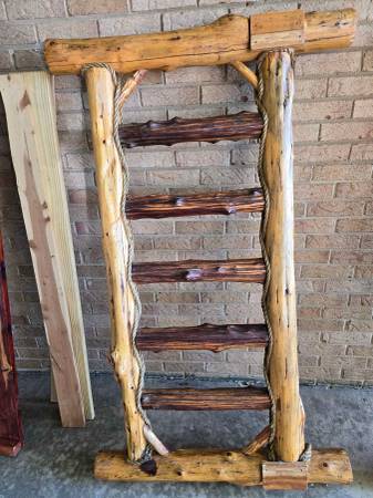 A custom cabin-style bed frame for a full bed. Has rope accents. Needs new nails to put together but otherwise perfect condition. Pick-up only please.