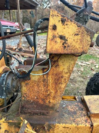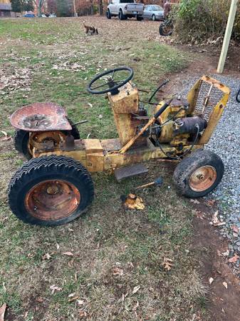 1961 Cub Cadet Original with mowing deck. Serial number is 12442. Doesn’t have a gas tank, air cleaner or hood. Carb is not seized. Pretty nice grill. The starter generator needs rebuilt and it needs tires. Does have spark and will hit if you bottle feed it. Goes into all the gears fine. The shifter cover has a hole in it so I put another one on off a regular cub. Seat is cracked but could be welded up. Mowing deck is really solid but has rust scaling. The blades spin but the center bearing is stuck. Doesn’t have a key but it shouldn’t have ever had a keyswitch in it. It’d be great to restore being the first year of cub cadets. $300 or best offer