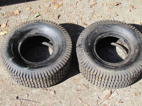 TWO new Carlisle Turf-Saver tires, 18 x 7.50 - 8 NHS. "Nubs" still all over. Mild sidewall cracking on one. For riding mowers or garden tractors. MADE IN USA. Serious inquires only. If it is still...