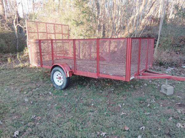 I have a 12 ft x 6 and 1/2 ft with 4 ft sides on it it's a heavy duty landscaping trailer it's built heavy it was custom built we never titled it we never tagged it we use it on the farm for hauling mulch sawdust little bit of dirt gravel it sets pretty good that's pretty far off the ground I don't need it I got a smaller trailer I have no use for it just sits at the house I have new tail lights and new tail light boxes Go with it new new wiring harness the price is in the price is negotiable a little bit
