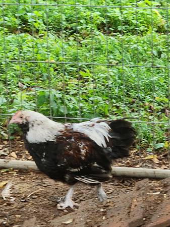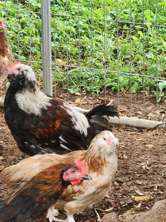 Have four 5 month old Salmon Faverolle Roosters for sale $10.00 ea text seven zero four 253 9018