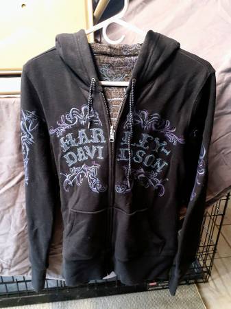 This is a females Harley Davidson sweatshirt jacket size small. This is wonderful to wear when it's to warm for the leather jackets.