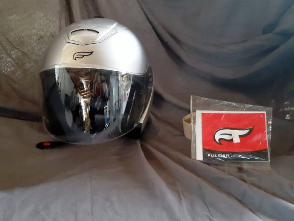 This is a wonderful Fulmer helmet. The helmet has a retractable sun shield as well as air vents that can be opened or closed. It also comes with it's own flannel cover for protection when not wearing.