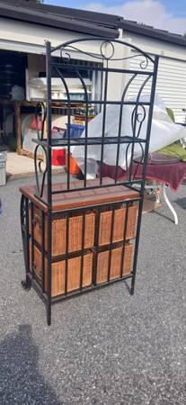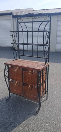 This bakers rack has been in storage since I got it. So it's in excellent condition. The 4 baskets are 12x12x17. The ONLY reason I'm selling it is because I live in a travel trailer and there is NO room for it.