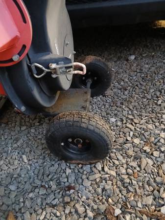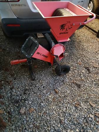 Hi I have for sale a small size chipper with a 6.5 hp Kohler engine used one time retails for $699.99 at Lowe's hardware has a big feed and a smaller one in the side runs excellent tires stay pumped up no leaking down like typical ones I'll take $450.00 $350.00 discount from new thanks for looking have a blessed day.