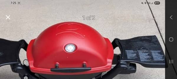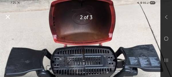 Portable weber grill for 110$ cost almost 300$ new only used few times great condition minor burn on folding shelves from lighting before opening. Also have adapter hose for it for large tanks for...