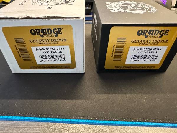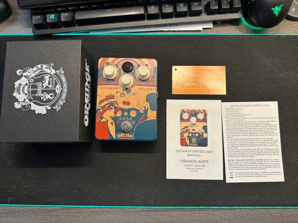 Practically brand new Orange Getaway Driver Overdrive. Functions as an amp in a box, and has headphones out as well for that cranked 70s Orange tone. It really draws out the midrange and has a distinct attack characteristic that we all remember from back in the day. The pedal has an internal switch to allow for more headroom on amps that are too bright or utilize a bright switch. This helps it play nicer with things like a boost in front of the signal chain without becoming too harsh and nasal. Comes with the original box abd paperwork.