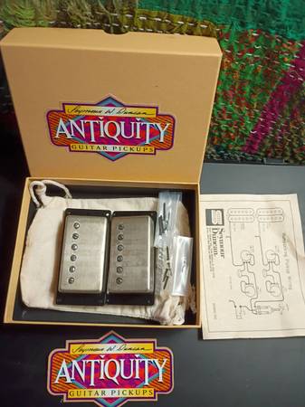 If you're craving the classic sound of legendary PAF (Patent Applied For) humbucking pickups, you should check out this set of Seymour Duncan Antiquity humbuckers. Looking and sounding like well-played '50s PAF humbuckers, each of these handmade pups has its own DC resistance and sonic character. And to give your axe that vintage vibe, the nickel silver covers and poles on these humbuckers are "aged," a painstaking process carried out in Duncan's Antiquity Room. These pickups are not wax potted, which also lends to their vintage sound and appearance.