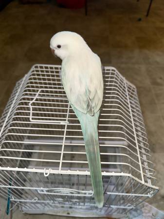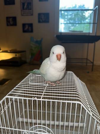 Sweet boy loves to hangout on your shoulder and fly around the house. These are very smart birds can learn to talk and do tricks. Can come with cage/toys/food for extra $50