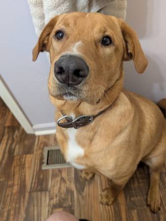 If anyone has experience with high energy dogs and is looking for a pup, look no further. This is buddy, he’s one year old and he's very loving but I don't think we have the skills to train him. With a newborn in the house we're now looking for a home for buddy.