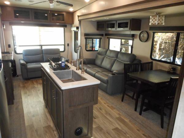 2018 Forest River Wildwood Heritage Glen LTZ M370BL Fifth Wheel Camper. This Camper Has A Salvage Title. The Slide Floor In The Living Room Had Soft Spots In The Flooring It Has Been Fixed This Camper Has Not Been In A Flood!!!