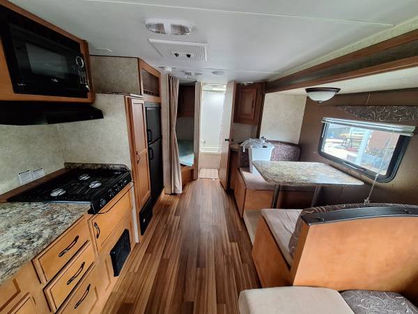 Super clean camper that accommodates 9 sleepers. All appliances are in excellent condition. New mattress on the queen bed and new toppers. Drop hitch with stabilizer for safe travel is included.