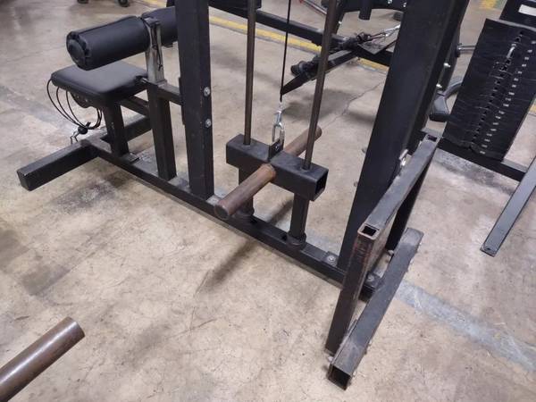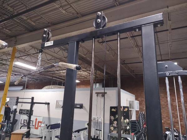 Great upper body combo machine available. This is a preowned lat pulldown / low row combo machine. The combo machine is plate loaded. Take your back workout to the next level with this machine today!