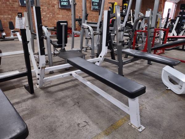 Great bench designed by Body Solid available. This is a preowned Body Solid Olympic flat bench. Take your workout to the next level with this flat bench today.