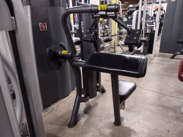 Great piece designed by Elite Champion Barbell. This is a preowned tricep extension machine. The Elite Champion Barbell tricep extension is selectorized with a weight stack of 120lbs. Take your tricep workout to the next level with this machine today!