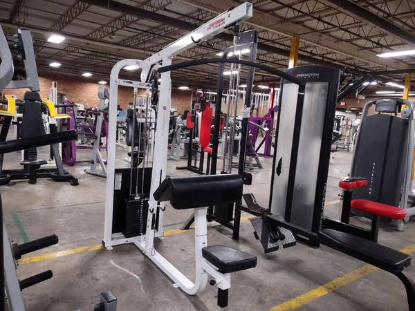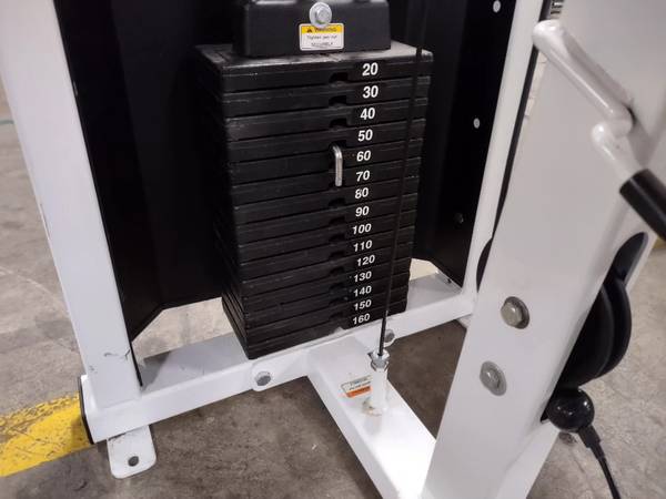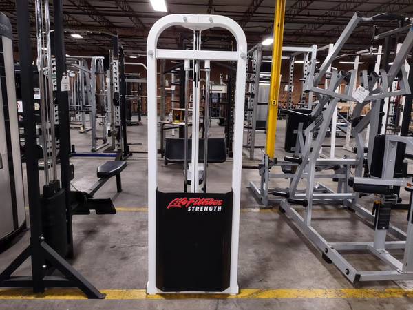Great combo machine designed by Life Fitness available. This is a preowned Life Fitness lat pulldown / bicep curl machine. The machine is selectorized with a weight stack of 160lbs. Take your back and bicep workout to the next level with this combo machine today!