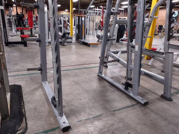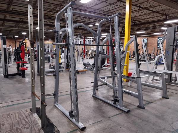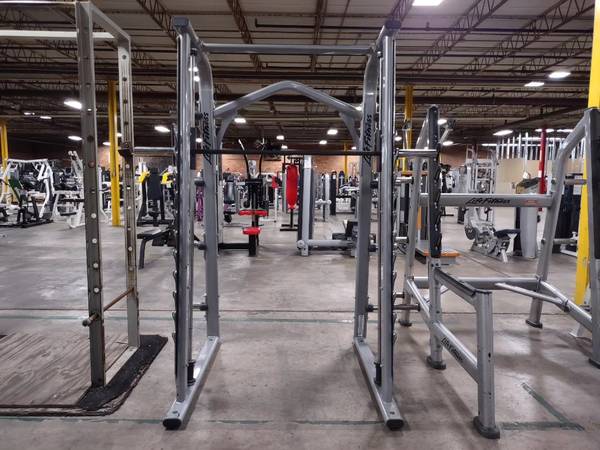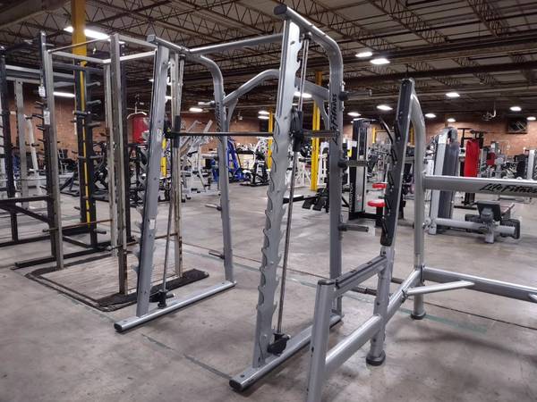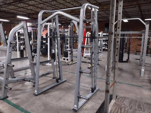Great piece designed by Life Fitness available. This is a preowned Life Fitness smith machine. Take your full body workout to the next level with this smith machine today.