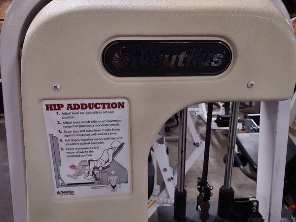 Great piece designed by Nautilus. This is a preowned Nautilus hip adductor. The Nautilus hip adductor is selectorized with a weight stack of 250lbs. Take your inner thigh workout to the next level with this machine today.