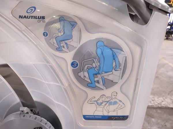 Great piece designed by Nautilus available. This is a preowned Nautilus One tricep press machine. The Nautilus One tricep press machine is selectorized with a weight stack of 250lbs. Take your tricep workouts to the next level with this machine today.