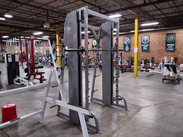Great piece designed by Nautilus . This is a preowned Nautilus smith machine. The Nautilus smith machine can perform variety of different types of exercises. Either its a upper or lower body workout take it to the next level with this smith machine today.
