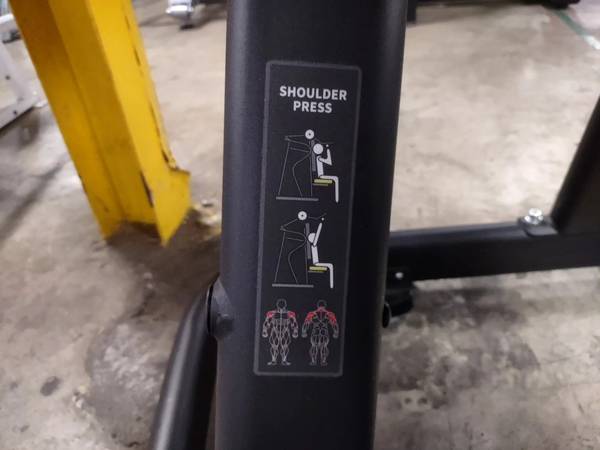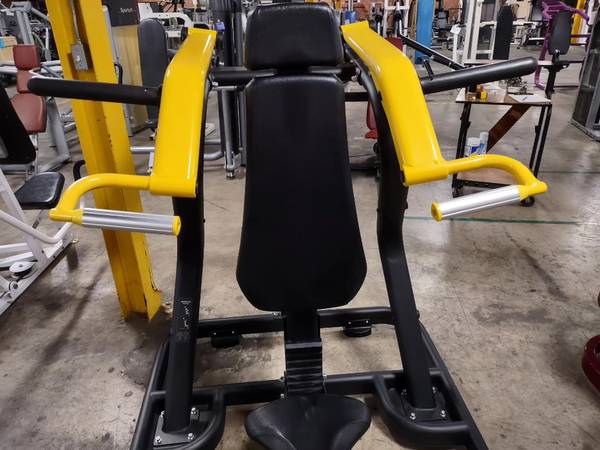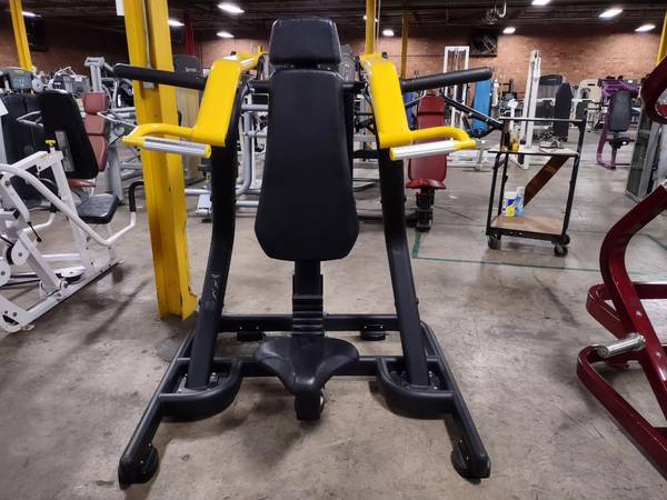Great upper body machine available. This is a preowned piece. The machine is plate loaded. Take your shoulder workout to the next level with this machine today!