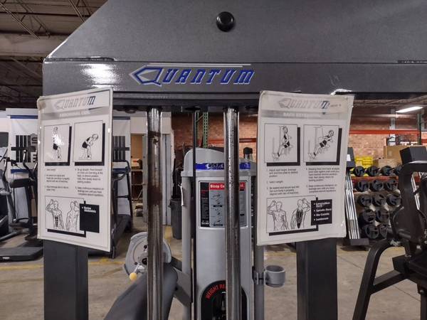 Great combo machine designed by Quantum available. This is a preowned Quantum back extension / abdominal combo machine. The machine has a weight stack of 200lbs. Take your back and abdominal workout to the next level with this machine today!