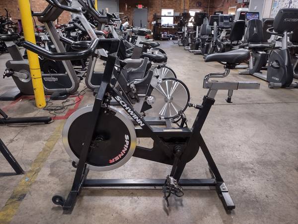 Great piece of cardio designed by Schwinn available. This is a preowned spin bike. Take your cardio to the next level with this spin bike today!