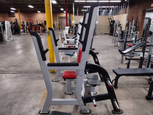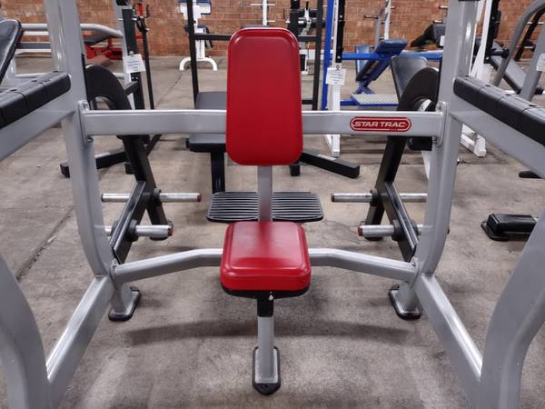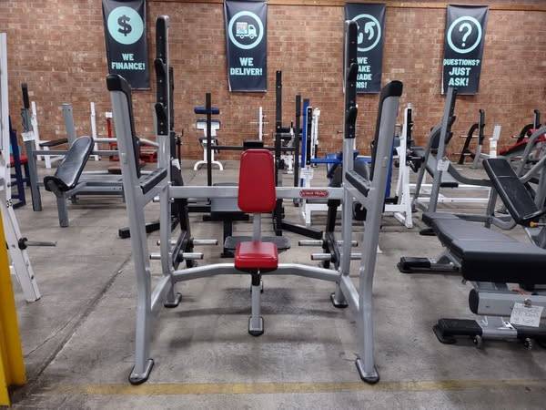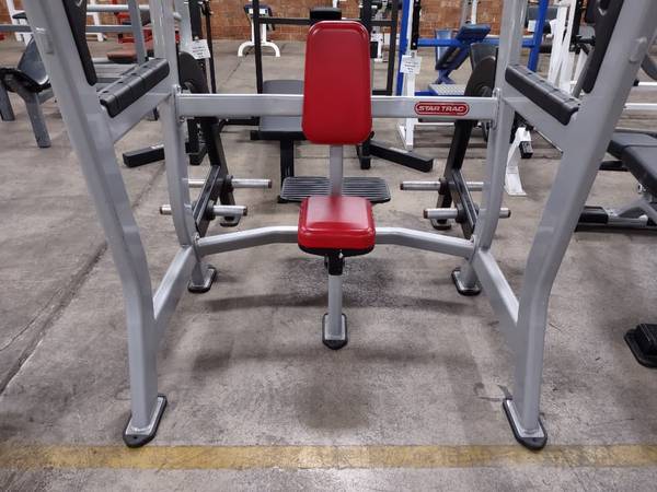 Great bench created by Star Trac for any type of fitness center or home gym. This is a used piece but in good condition. Check out this Olympic Military Press bench today!