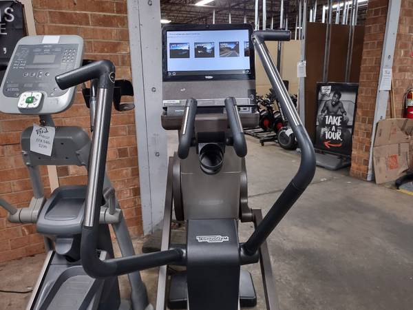 Great piece cardio designed by Technogym available. This is a preowned Technogym touchscreen elliptical. The elliptical allows you to run on different trails or play games such as angry birds while getting your steps in! Take your cardio workout to the next level with this elliptical today!