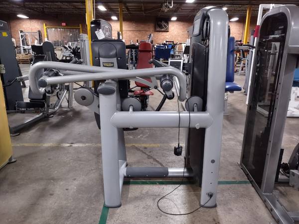 Great upper body machine designed by Technogym available. This is a preowned Technogym multi grip shoulder machine. The shoulder machine is selectorized with a weight stack of 190lbs. Take your shoulder workout to the next level with this machine today!