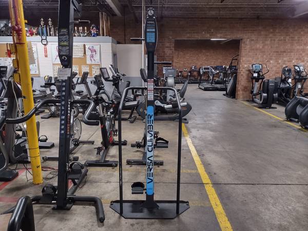 The Versa climber is a type of cardio machine. This machine is preowned and is designed to mimic the action of climbing a mountain. Take cardio to the next level with this machine today.