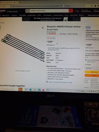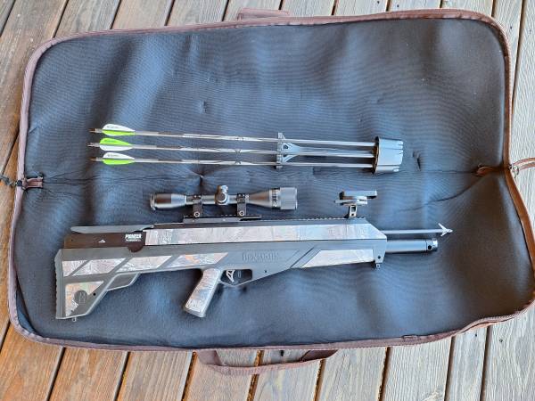 I have a Benjamin Air Bow that I bought new a few years ago and not using. I shot it a few times and put it away. My intention was to use it for hunting but just never persued the interest. I have over $1100 in the entire package. Everything you need plus extra arrows. Like new and ready to hunt. I encourage you to watch some videos on how well this thing shoots. Please do not try to low ball me as I will ignore you. Serious buyers only please. Call or text me at eight 2 eight, 3 nine zero, 0 one nine 2.